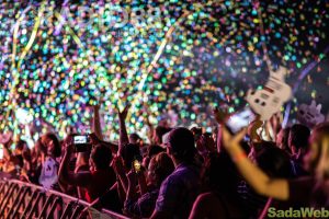 A többezer ember önfeledt bulizása látványnak sem volt utolsó. A szervezők minden helyszínre érkezőnek teljes arcot takaró papírmaszkot osztottak, amelyek egyszerre lendültek a magasba a koncertek alatt. Amellett, hogy a fény-átjárta maszkok egyfajta misztikus hatást keltettek, még ajándékot is lehetett velük nyerni, no meg persze legyezőként is kiválóan funkcionáltak azon a forró, nyári napon.