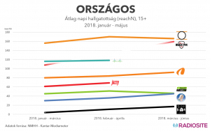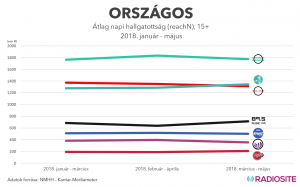 Változatlanul a Petőfi Rádió Magyarország leghallgatottabb állomása, azonban a Rádió 1 országosan és Budapesten is előrelépett – derül ki az egységes rádiós közönségmérés március és május között rögzített adataiból. Az NMHH weboldalán publikált számok azt mutatják, hogy országos szinten továbbra is a Petőfi Rádió uralja az étert 1,8 millió fős hallgatótáborral, majd a Rádió 1 és Kossuth Rádió következnek, egyaránt 1,3 milliós közönséggel. A negyedik helyen lévő Music FM hallgatottsága majdnem 100 ezer fővel nőtt az előző méréshez képest, és jelenleg 713 ezernél áll, az őt követő Sláger FM átlagos napi hallgatottsága pedig 502 ezer volt az adatfelvétel időszakában.
